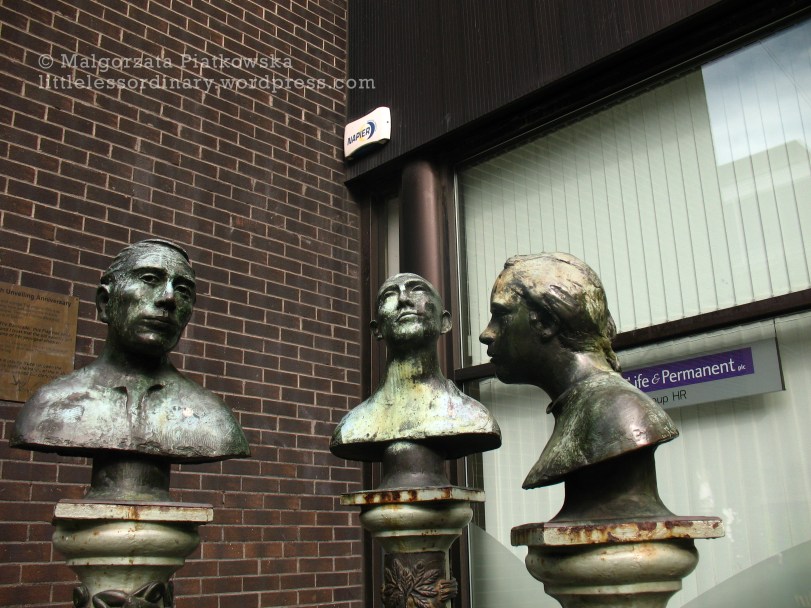 Talking heads By Ms Margaret Friday December 22, 2011 monuments old days Abbey St., D1 As far as I remember, these gentlemen are authors of Irish constitution. I find it funny the way they are put together, they look as if they were in the middle of a very important conversation. Share this: Share on X (Opens in new window) X Share on Facebook (Opens in new window) Facebook Like Loading... Related